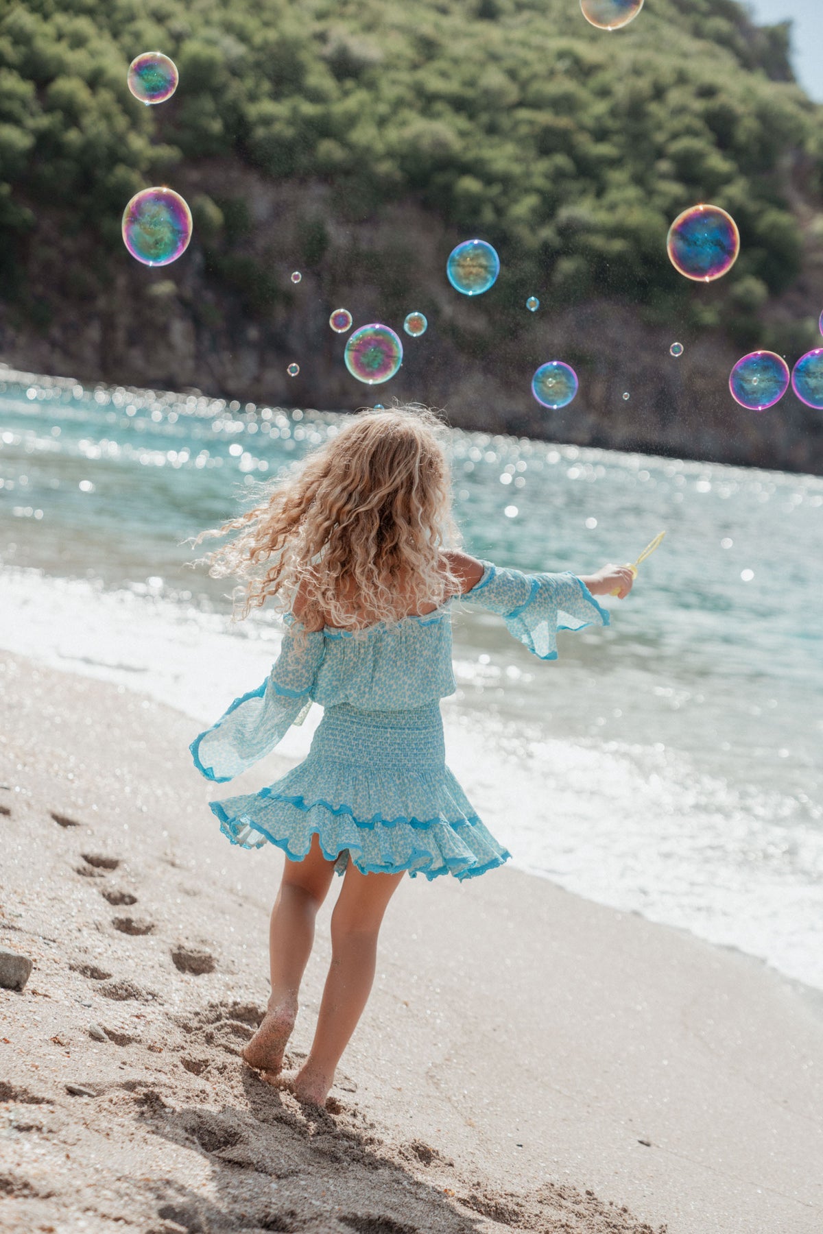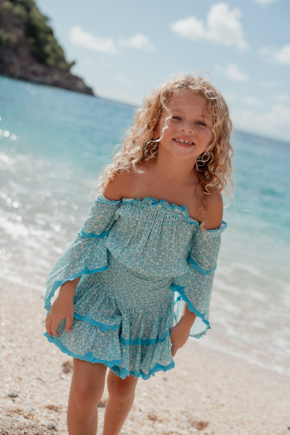 One of our iconic dresses is now available for kids! The Cecilia Kids dress brings one of our most loved styles to the children's collection. This adorable off-shoulder dress features a cute flower print. We love its original shape with a comfortable smock around the waist and a playful flowy bottom. It's the perfect dress to wear on holiday and on summer festive occasions.