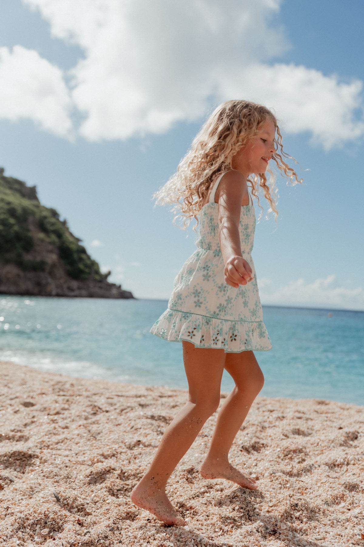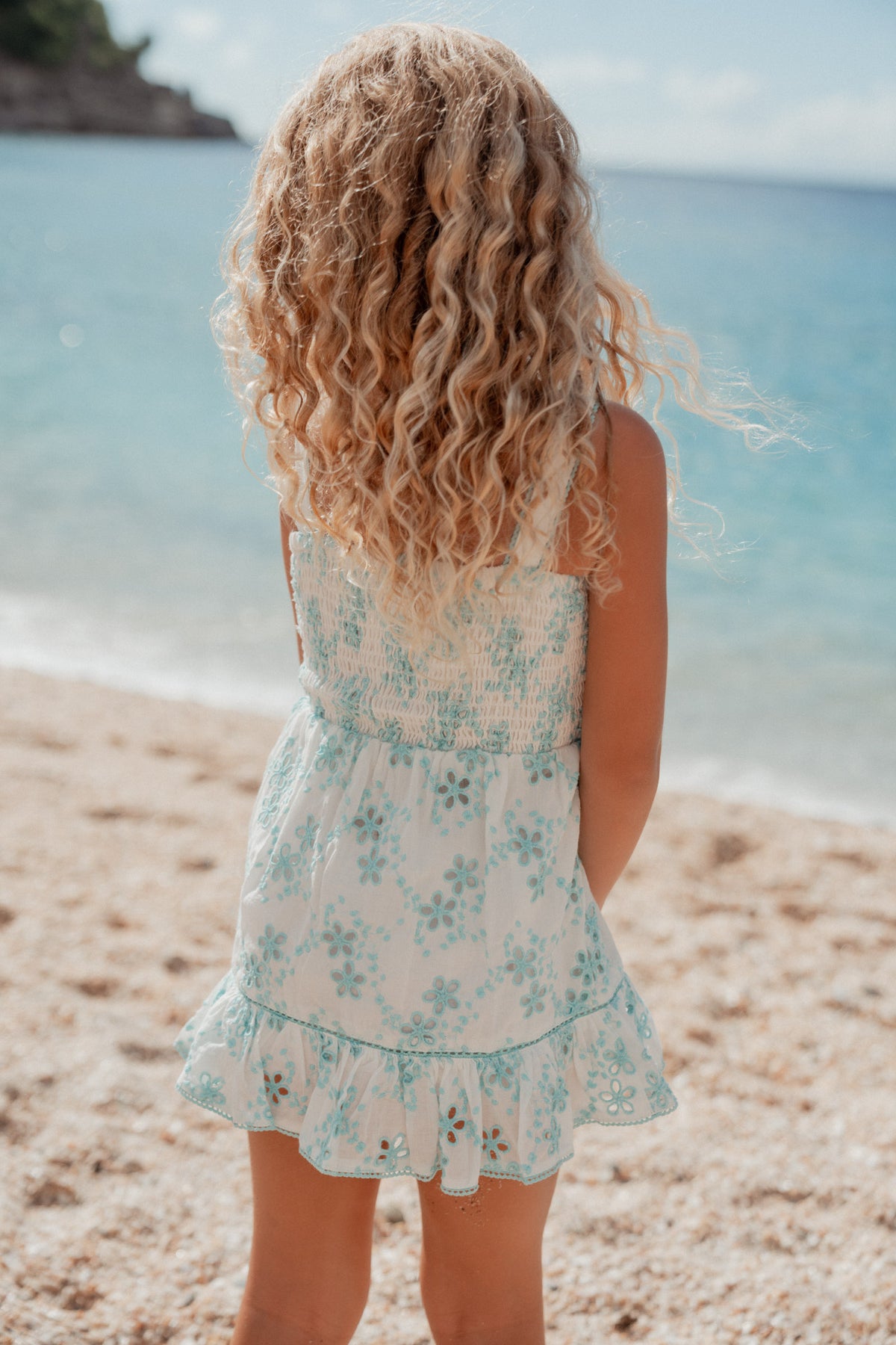 Match with your mini-me! The Lolita Kids dress is a delightful short dress with cute flower embroideries. This versatile piece is ideal for a day at the beach or a more formal event. Moms will love that they can create matching looks with our women's dresses available in the same print.
