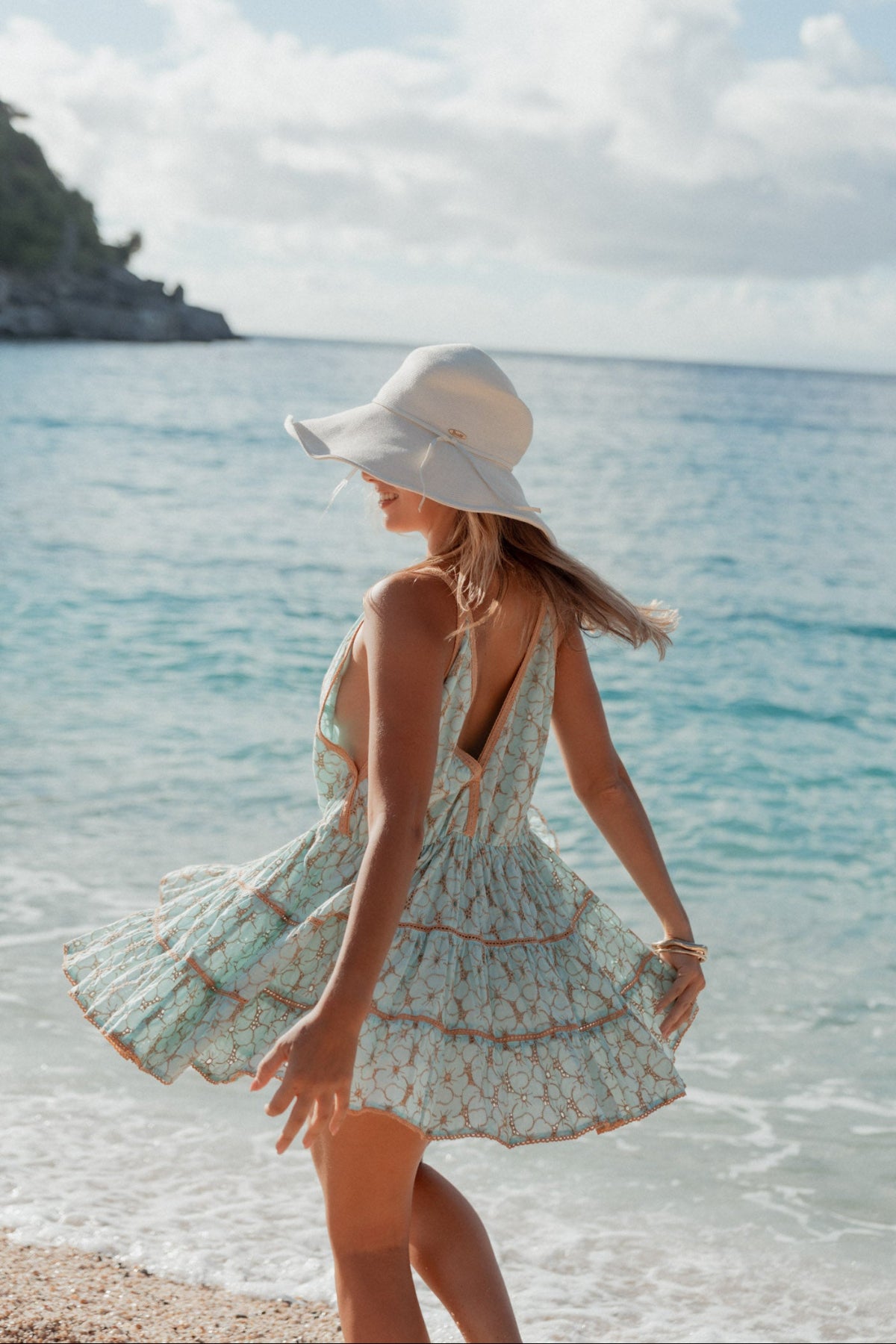 This piece is an ideal cover-up or light dress, featuring a flattering low V-neck cut at both the front and back. Crafted in a light cotton fabric with embroideries, it's slightly marked at the waist and flared at the bottom for a beautiful silhouette. A Sunday favorite you will love taking with you on holiday!