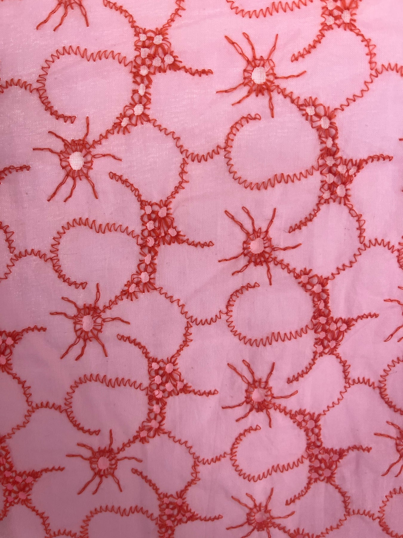 100% embroidered cotton. We recommend washing at 30°C (cold wash) and hanging to dry — it’s gentler on both the fabric and the planet.
