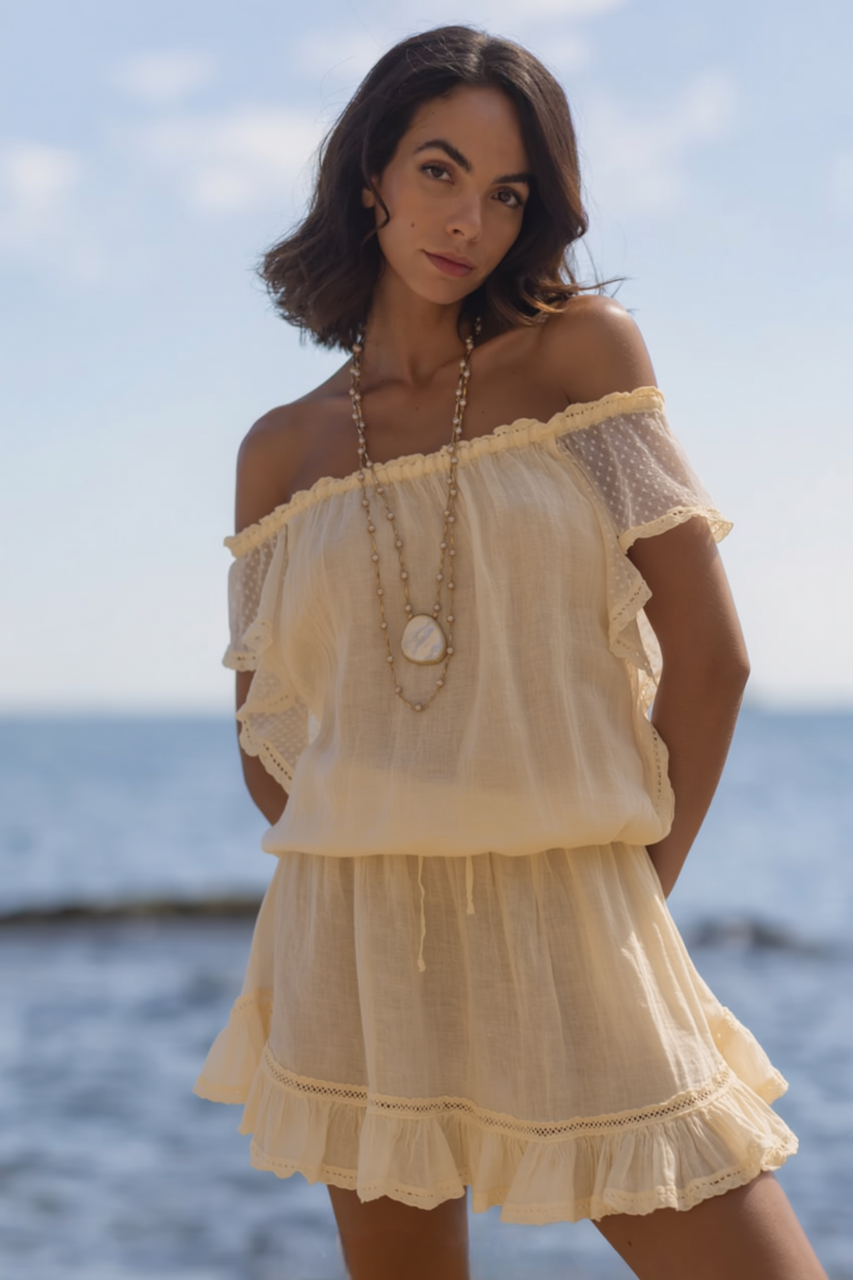Our new favourite off-shoulder linen mini dress — a perfect blend of beachwear elegance and ease. Crafted in Italy from 100% Italian linen, this piece feels as luxurious as it looks.