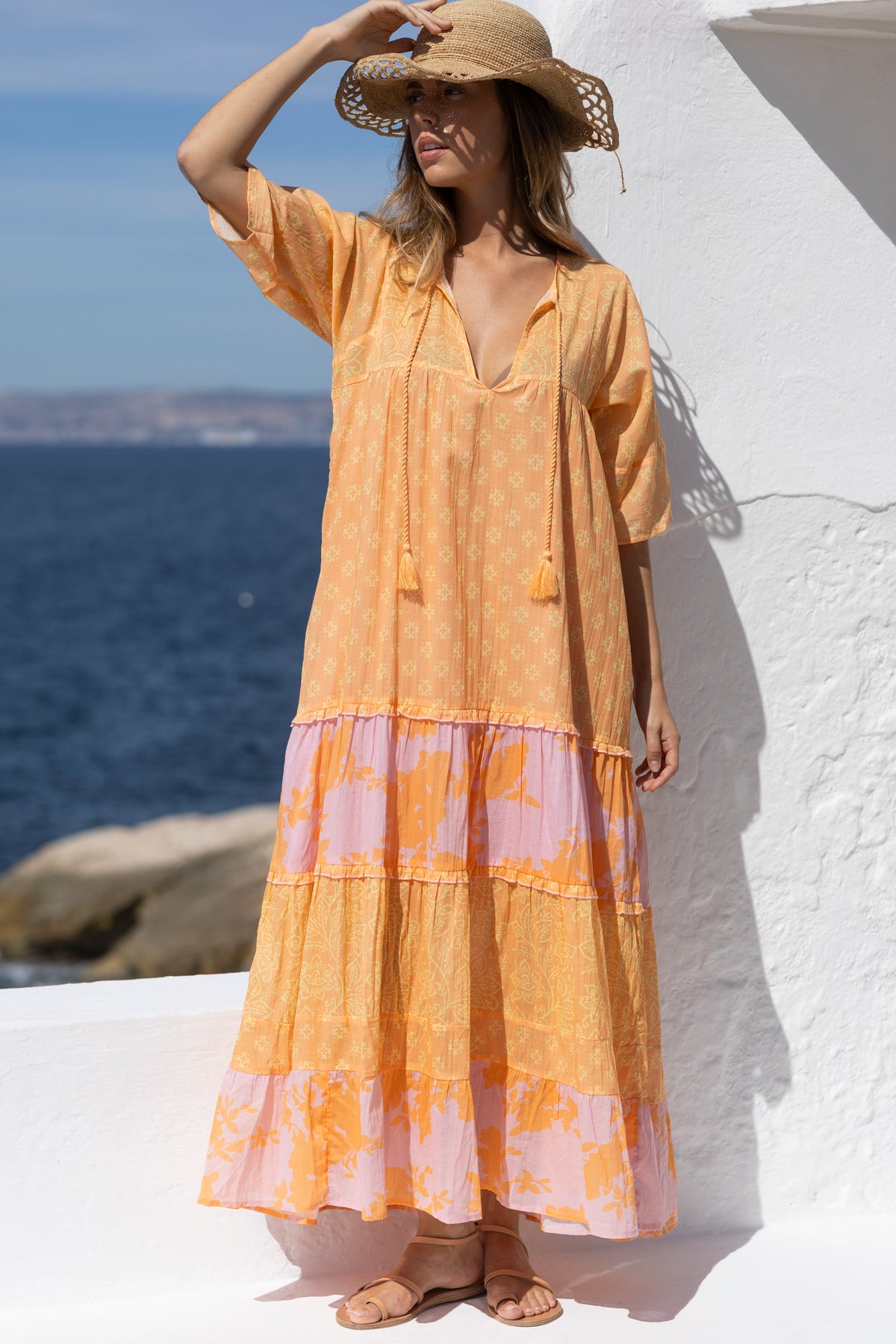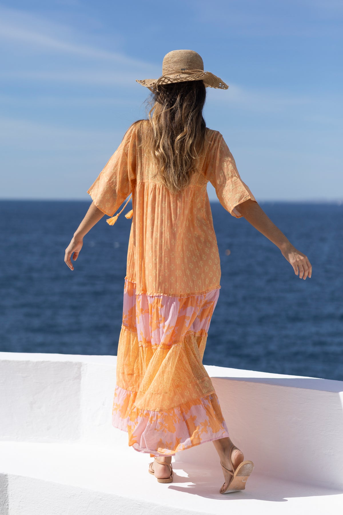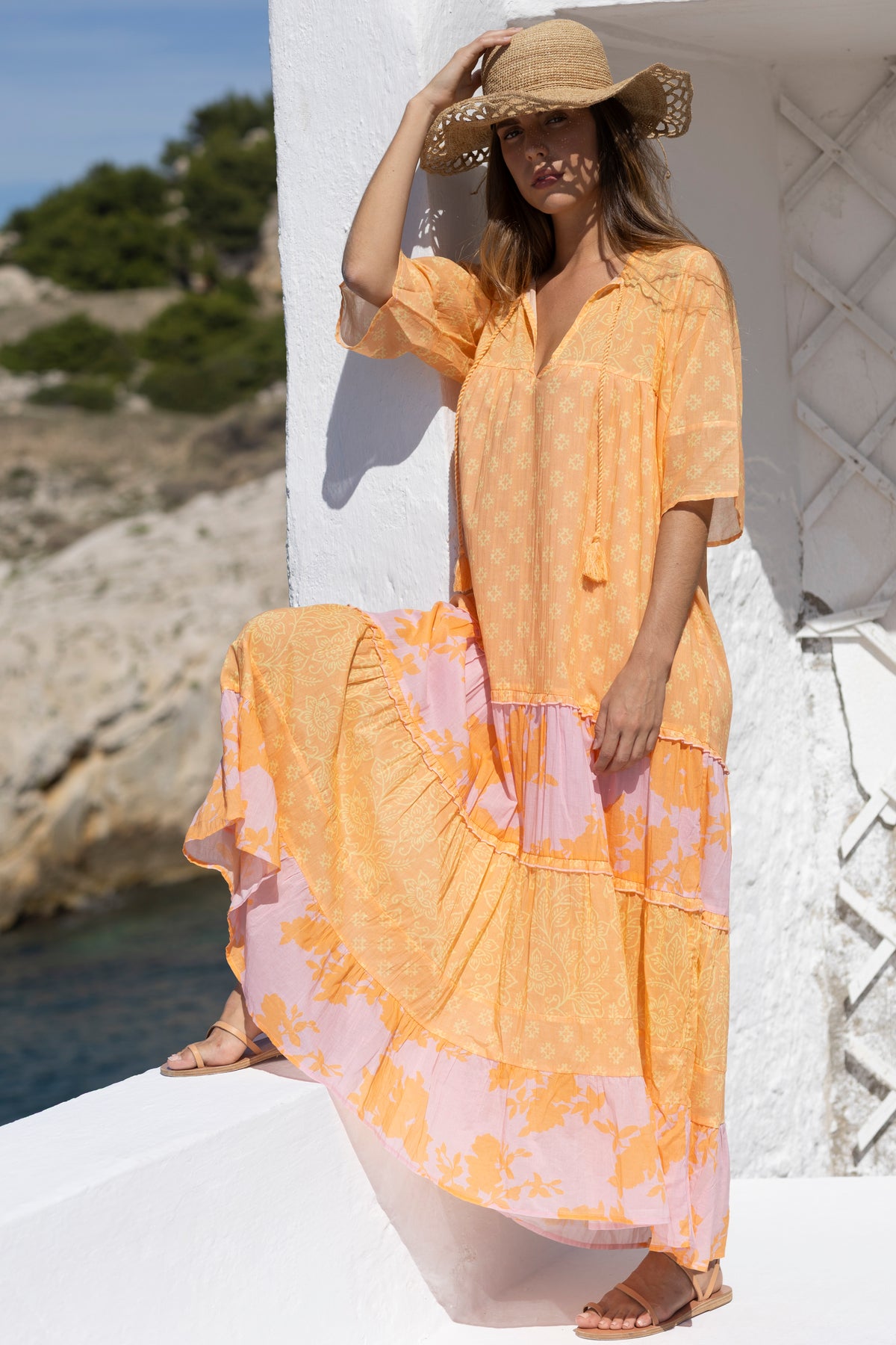 The ultimate holiday comfort! Our new layered maxi dress is the perfect blend of bohemian romance and everyday ease. Crafted from an airy, soft cotton, it features a vibrant mix of prints for a truly unique aesthetic. With its elbow-length sleeves and wide, flowing cut, it offers a relaxed silhouette enhanced by discreet ruffled details for a touch of refined elegance. From seaside escapes to city strolls, it’s the effortless staple you’ll want to wear every single day.